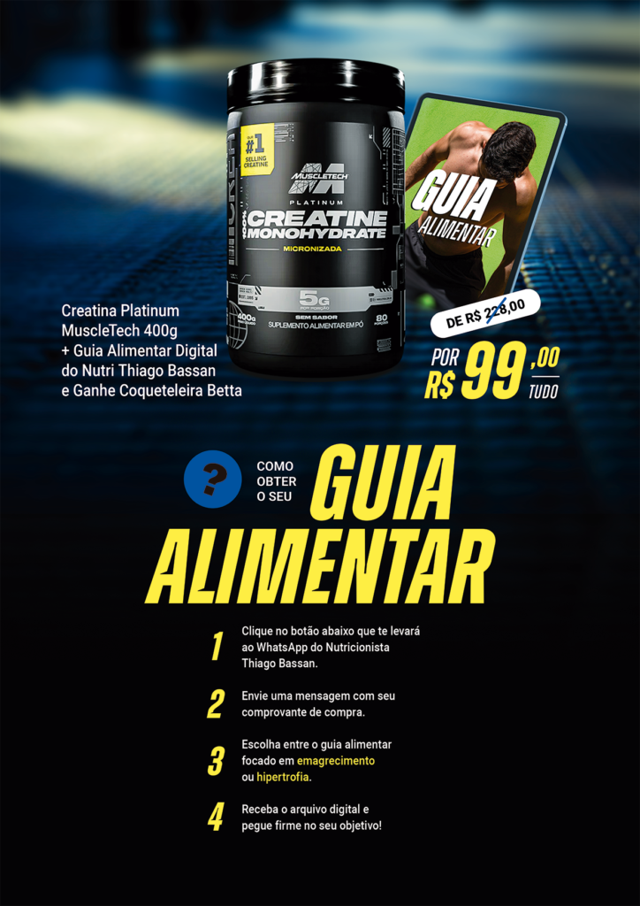 Compre Creatina Muscletech 400g e GANHE Guia Alimentar